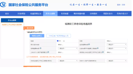 人社部于2019年底通過(guò)國(guó)家社會(huì)保險(xiǎn)公共服務(wù)平臺(tái)開通了養(yǎng)老金測(cè)算服務(wù),目前支持的是城鎮(zhèn)企業(yè)職工、個(gè)體工商戶或靈活就業(yè)人員的養(yǎng)老金測(cè)算。